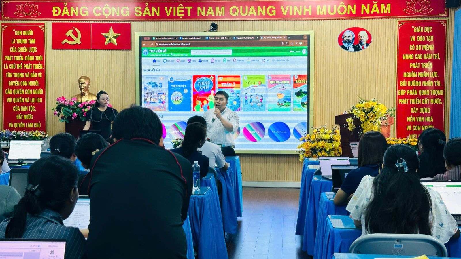 Sáng ngày 06/08, trường Tiểu học Võ Thị Sáu (Phường Tân Thới Hiệp, TP. Hồ Chí Minh) đã tổ chức buổi tập huấn sử dụng Thư viện số DLib K12 dành cho toàn thể cán bộ, giáo viên nhà trường. Buổi tập huấn nhằm trang bị kiến thức và kỹ năng cần thiết để giáo viên tiếp cận, khai thác hiệu quả kho học liệu số, phục vụ cho công tác giảng dạy theo hướng đổi mới, tích cực và hiện đại.
