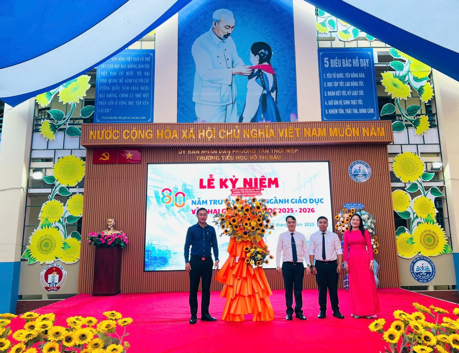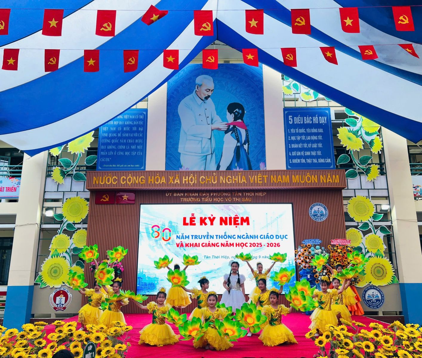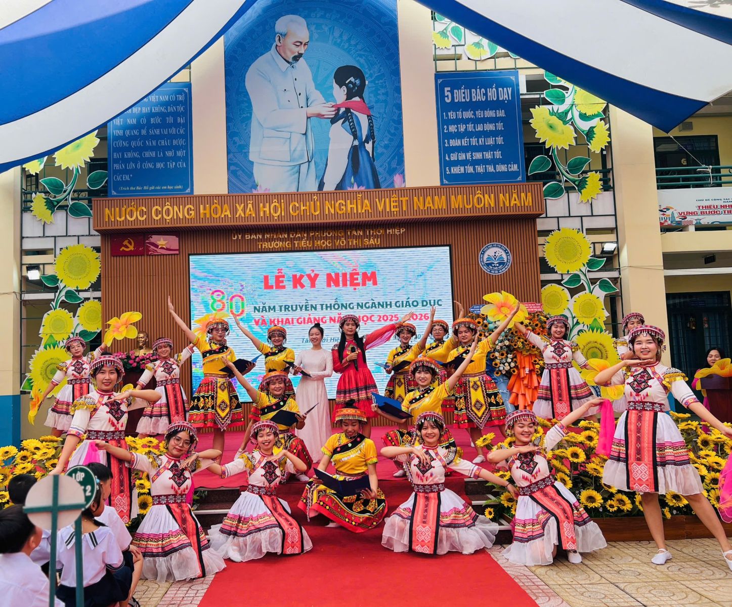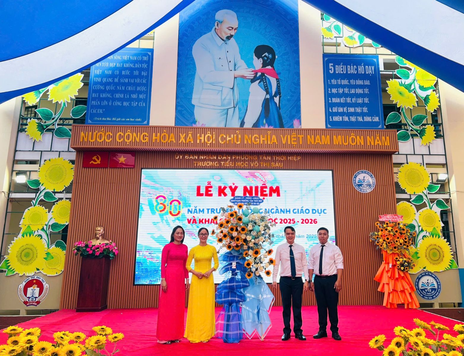 Sáng nay, ngày 05 tháng 9 năm 2025, Trường Tiểu học Võ Thị Sáu đã long trọng tổ chức Lễ Kỷ niệm 80 năm Truyền thống ngành Giáo dục và Khai giảng năm học 2025 - 2026. Đây là sự kiện quan trọng đánh dấu một cột mốc lịch sử, mở ra một hành trình tri thức mới đầy hứa hẹn.